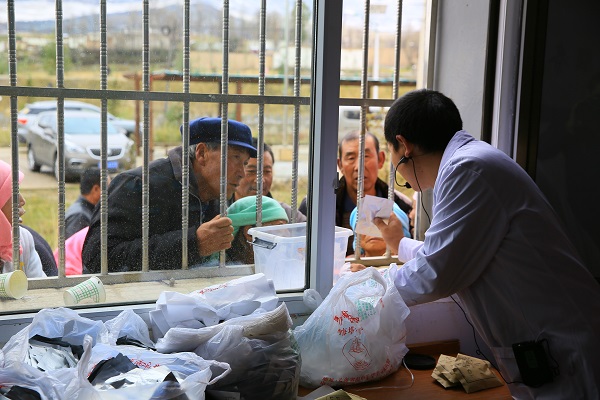 医疗队药剂师--在为患者发放免费药品